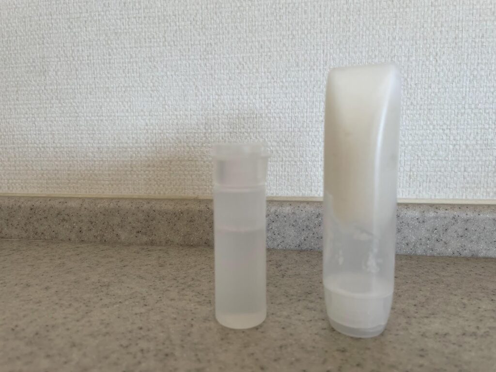 無印の容器(これも一番小さなもの)を購入して、小分けにして入れると持っていく量を少なくすることができます。