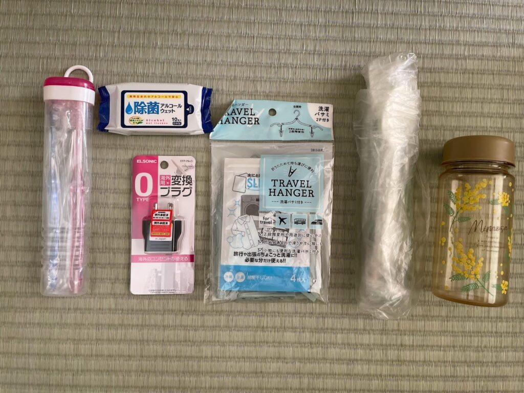 水筒は空で荷物の中へ。現地で持ち歩いたりするときに便利でした。