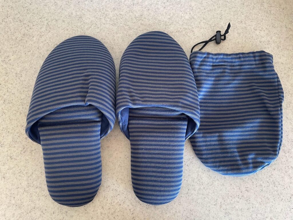 機内で快適に過ごすために購入しました。(ホテルの中にはスリッパ、ありました)